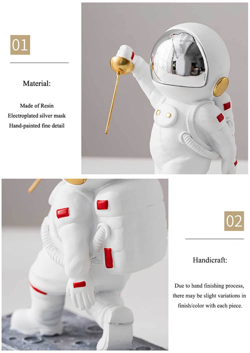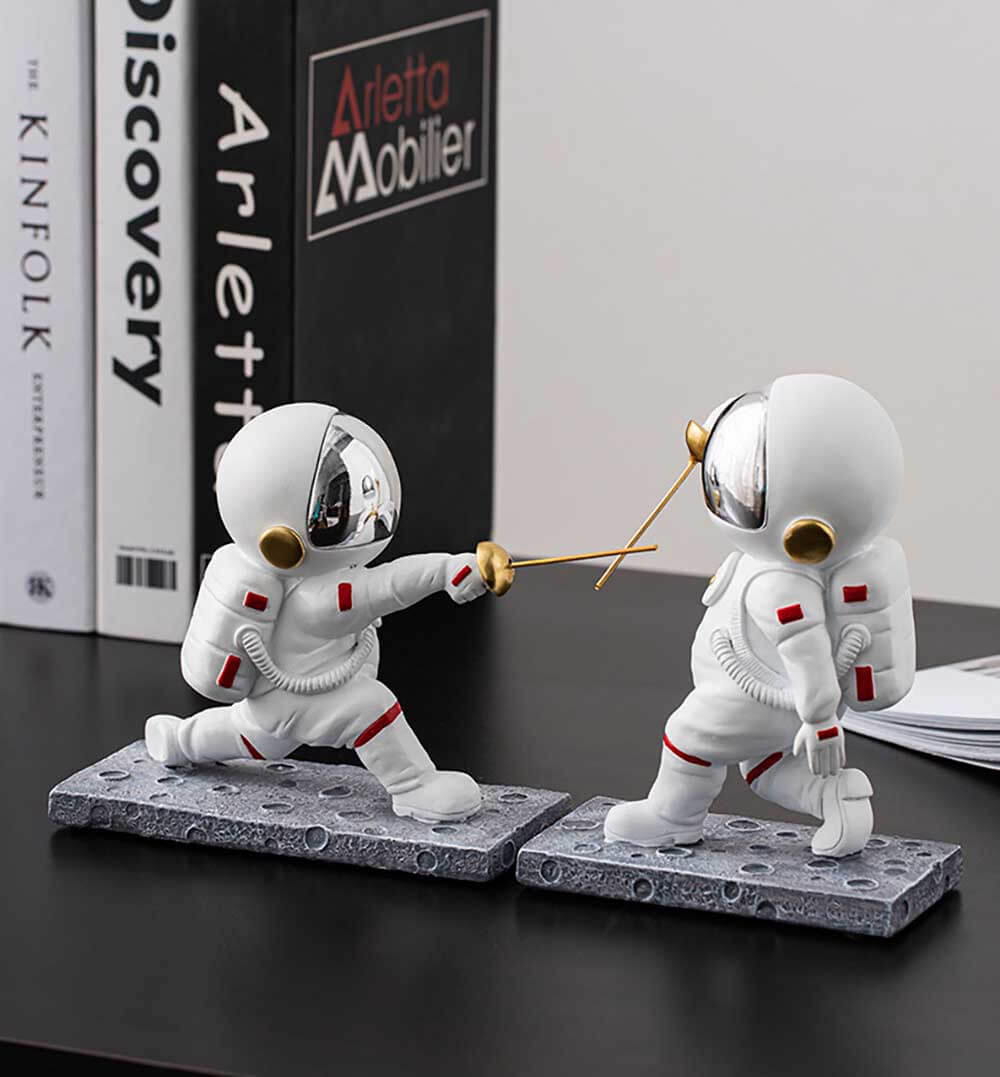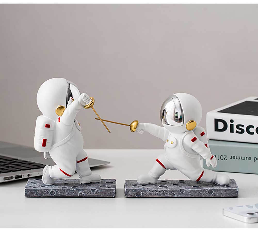 Hand painted on poly-resin for a stylish look. Special design of fencing astronaut gesture brings you a fantastic journey of space exploration.